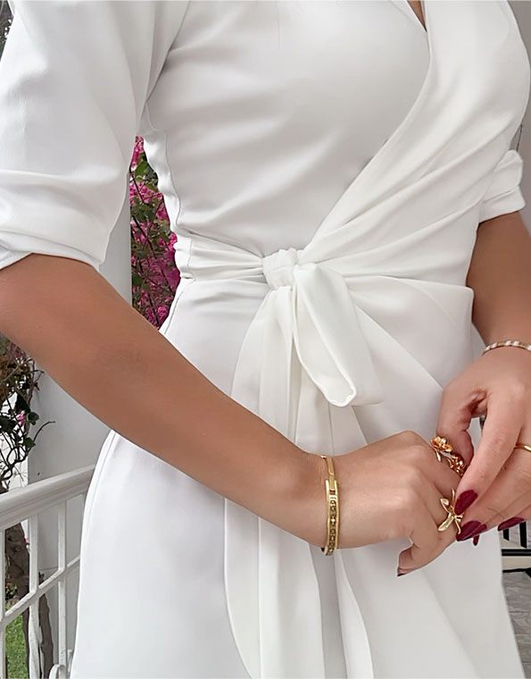 Hermoso vestido tejido plano semi strech, cómodo y fresco al cuerpo, hecho en algodón y elastano, muy durable, lleva lindo escote en V cruzado, con preciosa falda asimétrica hasta la rodilla y cintura regulable con hebilla, tiene lindo entalle muy favorecedor a la figura, y va forrado en toda la falda, disponible en tallas S M L, es realmente hermoso, elegante e imponente !!! 🥰💝🌷