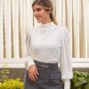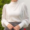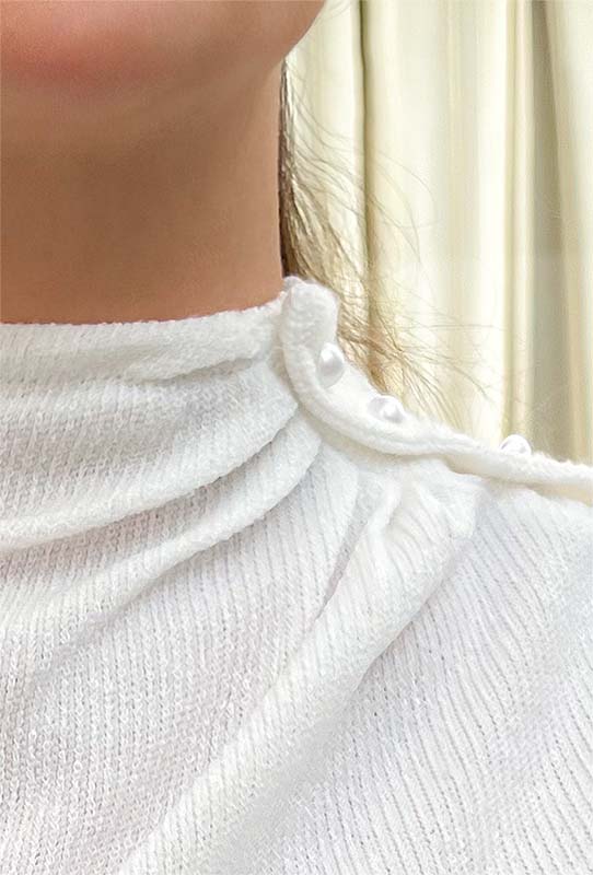 Linda Chompa de tejido chompero abrigador con mangas de gasa de motitas, lleva Perfecto drapeado en el cuello y botones perlita decorativos en el hombro, su precio es de 189, disponible en talla S M L, el muy lindo, delicado y femenino!!! 🥰💝🌷😍